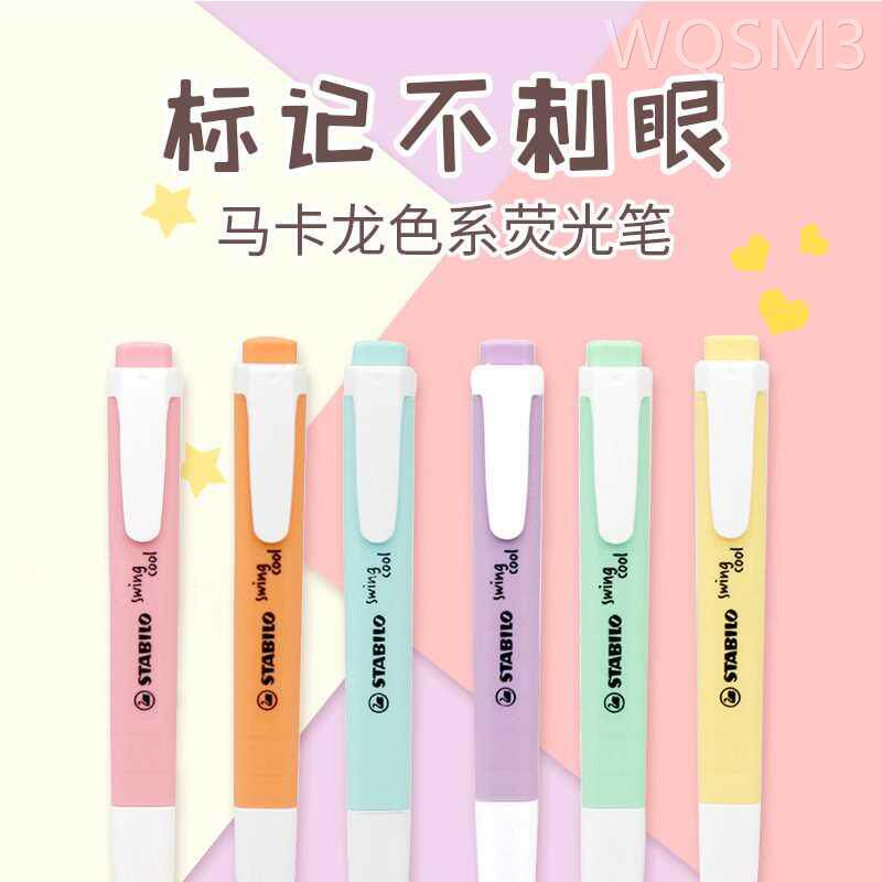 德国思笔乐淡彩色荧光笔套装stabilo重点标注迷你马卡龙色记号笔