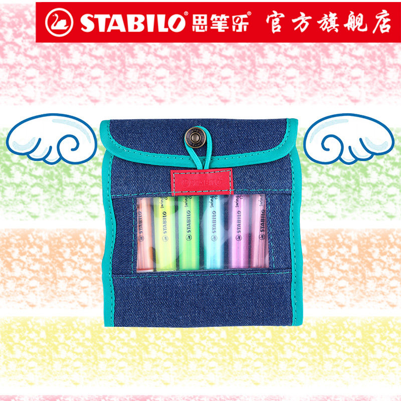 思笔乐stabilo德国填涂笔荧光标记笔手账学生用文具背书单词神器单头彩色记号笔彩色粗划重点小清新牛仔套装