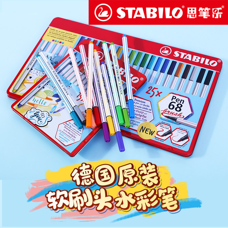 思笔乐stabilo德国进口68软头25色/15色绘画水笔礼盒装记号笔儿童学生初学者绘画用套装文具新年礼盒装送礼
