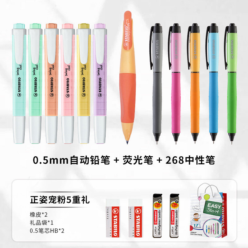 【店播】stabilo旗舰店德国思笔乐刷题笔专用高颜值荧光笔速干按动中性笔学生用0.5mm自动铅笔小学生专用练字