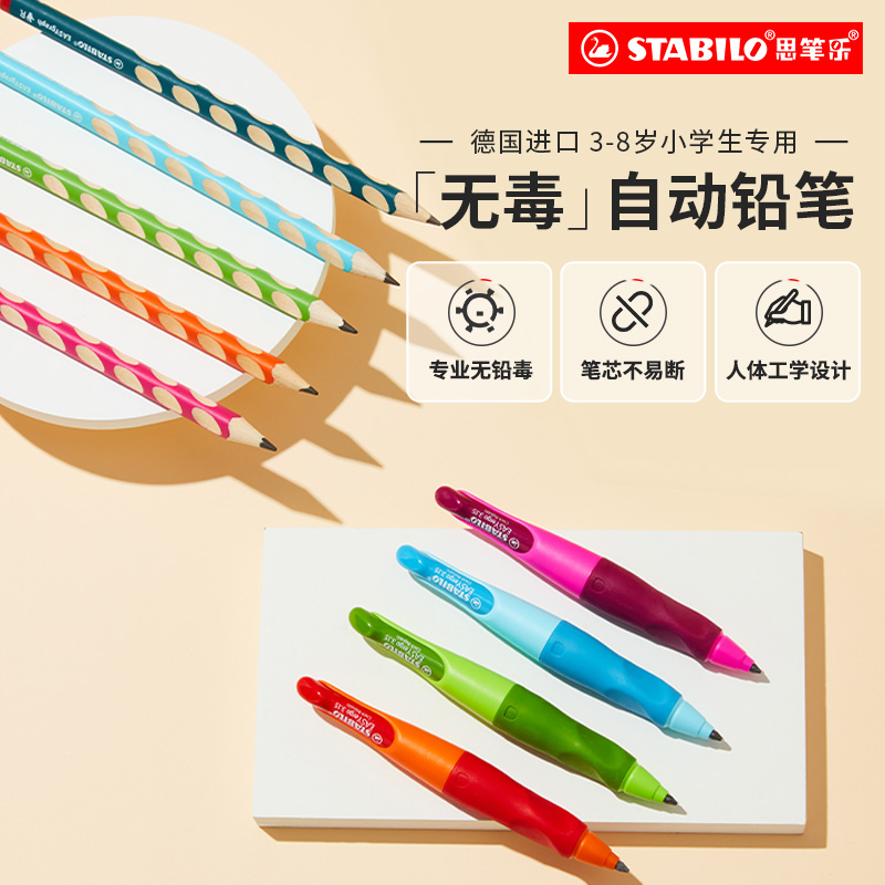 【店播】stabilo旗舰店德国思笔乐正姿自动铅笔小学生专用幼儿园一年级初学者矫正握姿粗杆无毒可爱胖胖铅笔