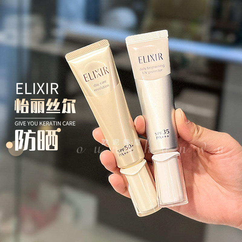 日本买的 ELIXIR美白防晒乳液 怡丽丝尔 新版本土银管