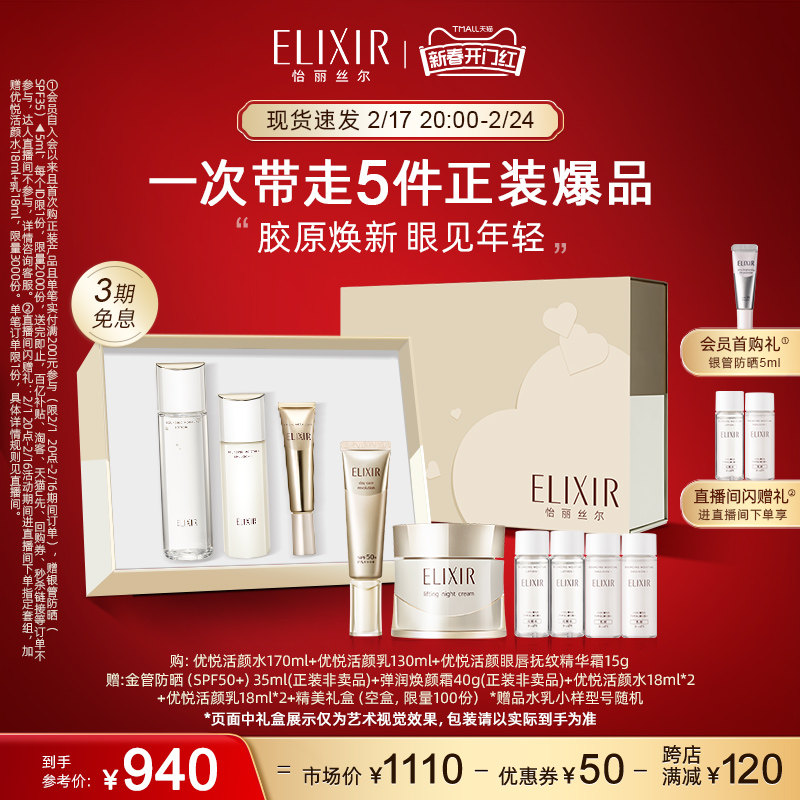 【自播专享】怡丽丝尔胶原焕新水乳美白保湿+优悦活颜眼霜15g