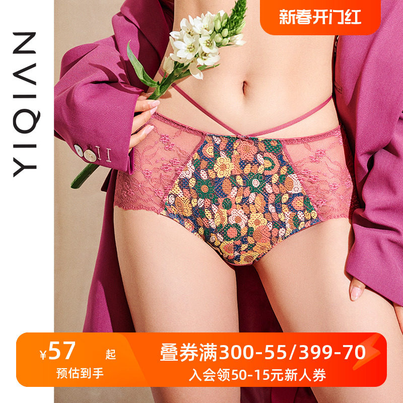 怡倩刺绣蕾丝边内裤女 夏季性感火辣透气网纱面料中腰三角裤