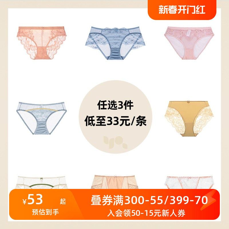 怡倩超值内裤福袋 性感透气薄款蕾丝女士中腰三角裤【3条69元】