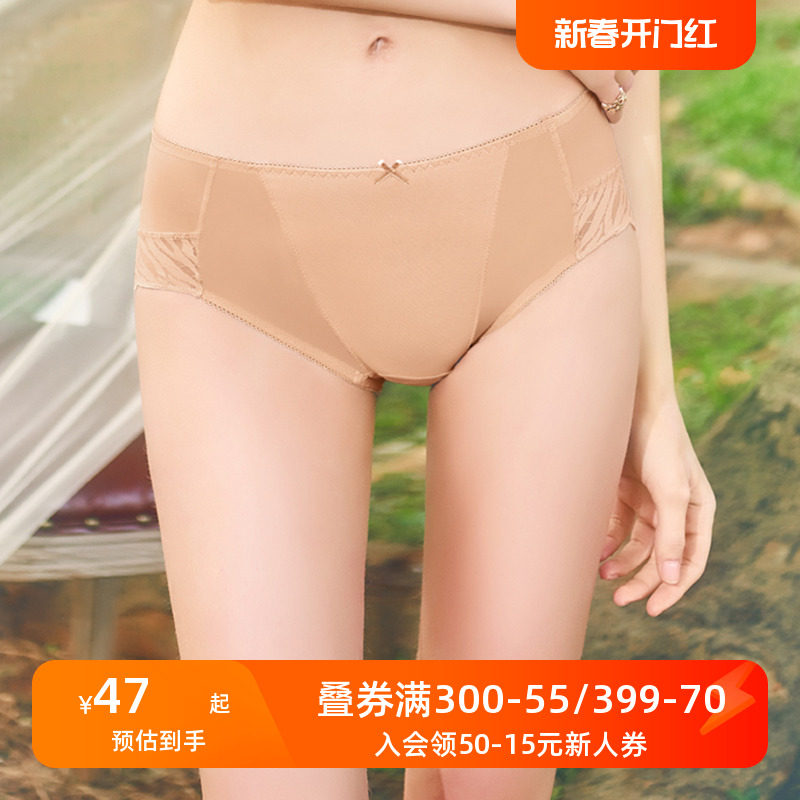 怡倩内裤女夏季薄款性感蕾丝透气收腹包臀纯棉档女士中腰平角裤