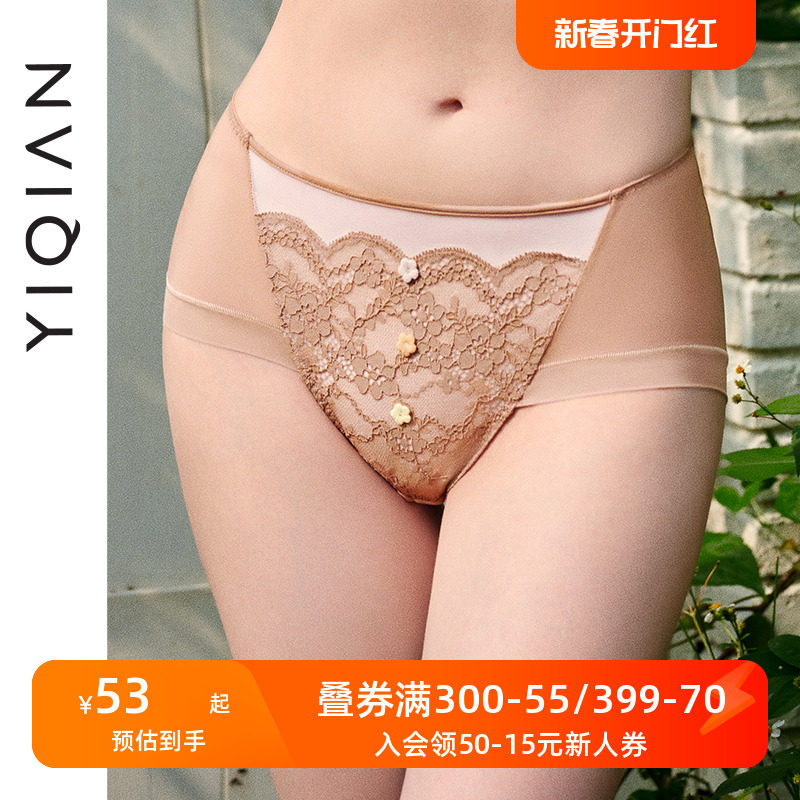 怡倩蕾丝内裤女性感超薄网纱纯棉档女士底裤 透气无痕中腰三角裤