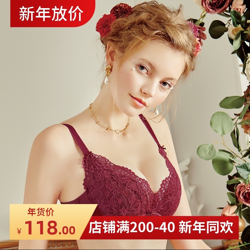 怡倩聚拢上托调整型文胸 刺绣蕾丝夏季无海绵棉杯薄款女士内衣