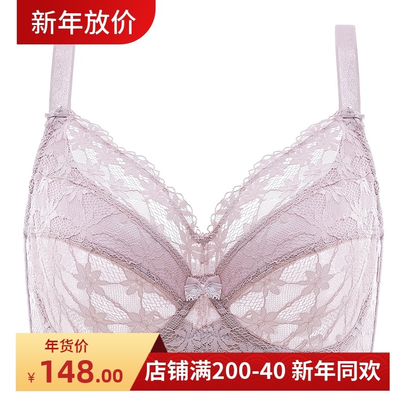 怡倩半透明超薄文胸 大胸显小薄款胸罩聚拢性感蕾丝女士大码内衣