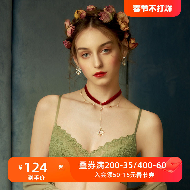 怡倩无钢圈文胸 三角杯透气蕾丝胸罩细带法式美背薄款女士内衣