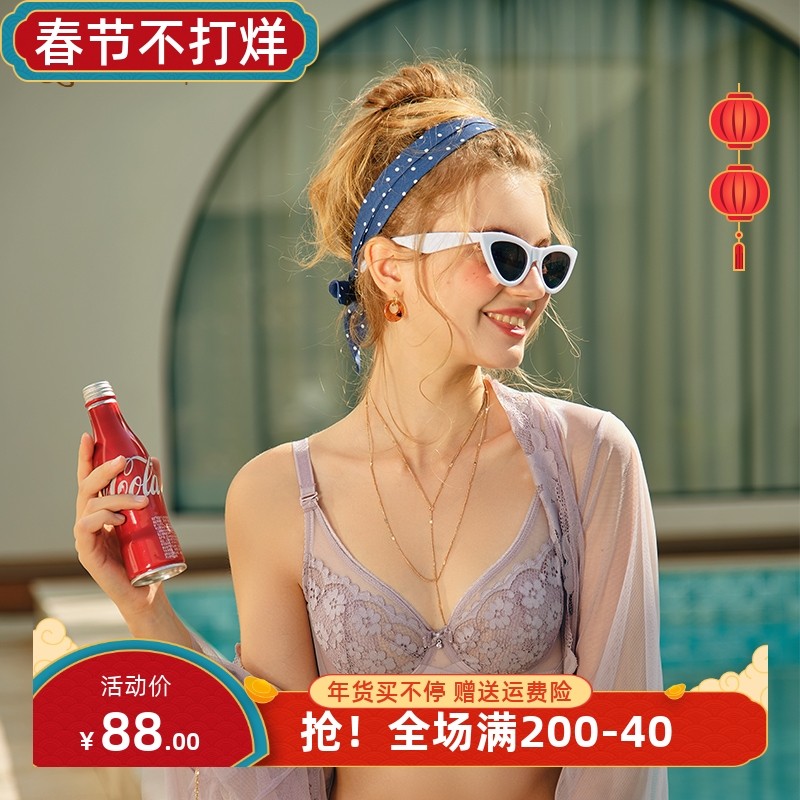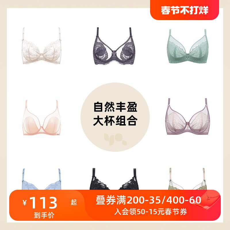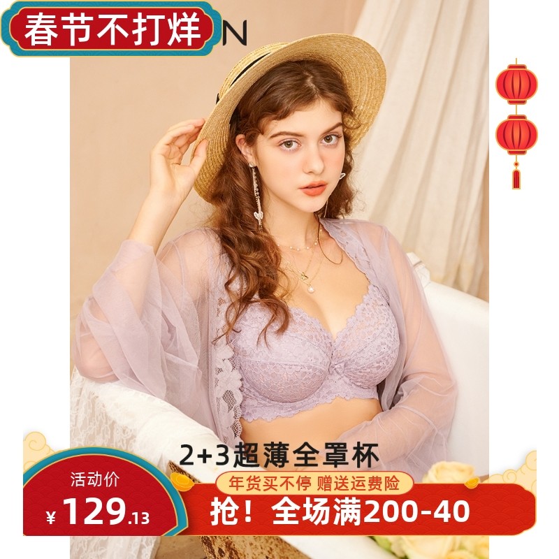怡倩法式内衣女薄款聚拢蕾丝胸罩大胸显小超薄文胸【2件139元】