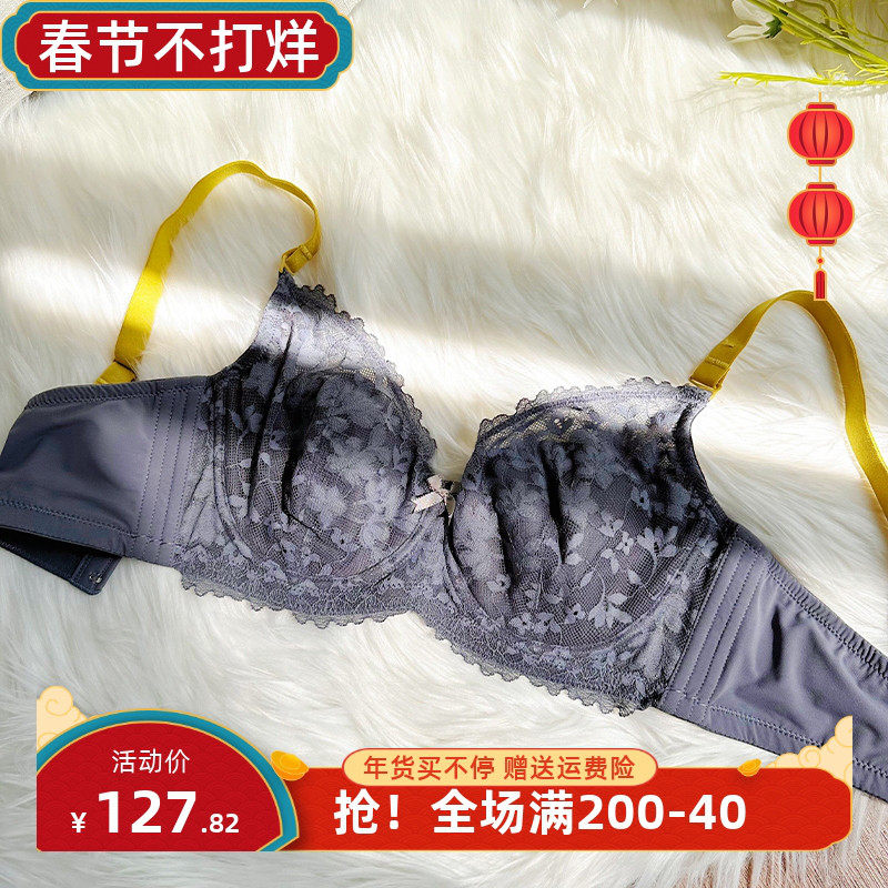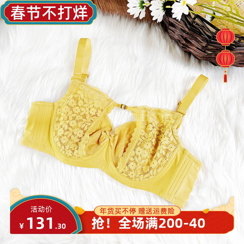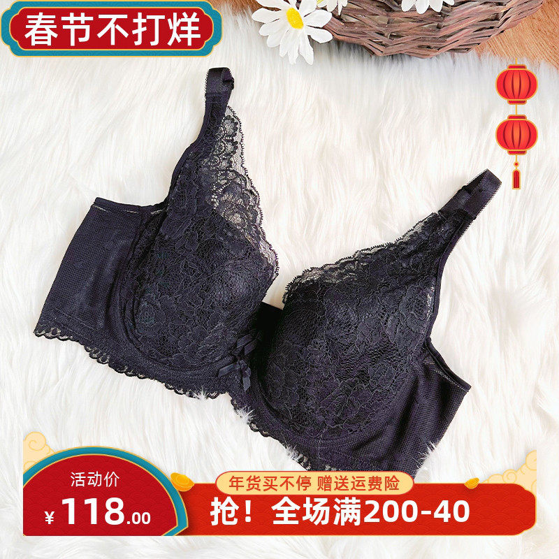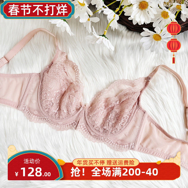 怡倩大胸显小文胸薄款聚拢蕾丝胸罩大码法式超薄性感惑内衣女夏季