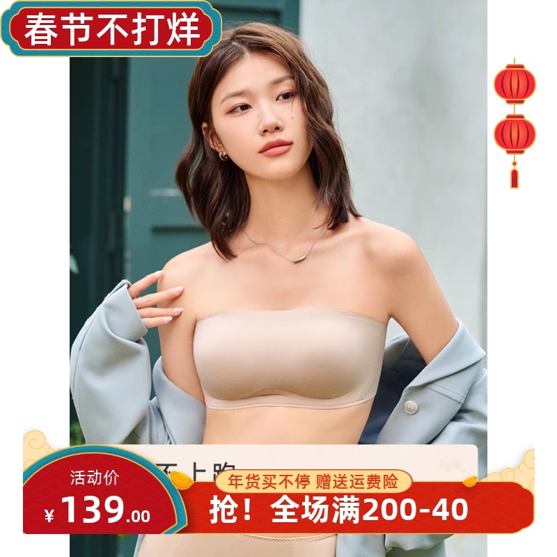 怡倩【防滑悬浮杯】无肩带内衣女聚拢无钢圈裹胸薄款无痕抹胸文胸