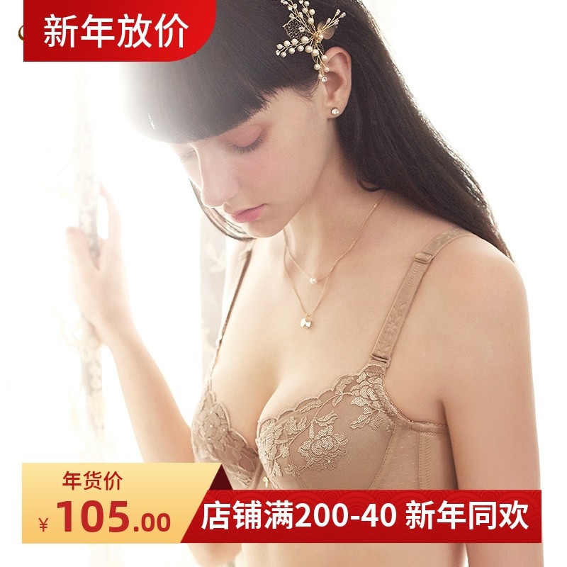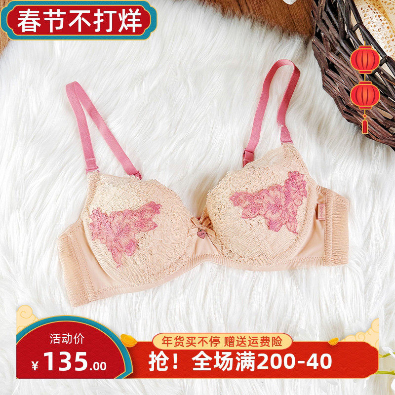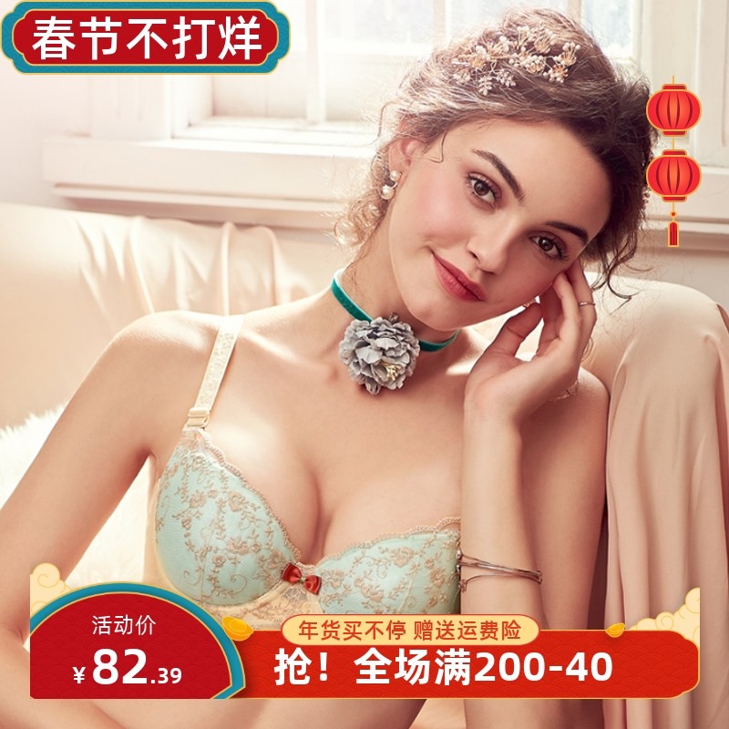 怡倩小胸聚拢调整型文胸 收副乳薄模杯胸罩刺绣蕾丝薄款内衣女