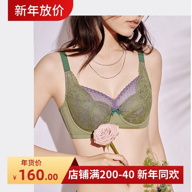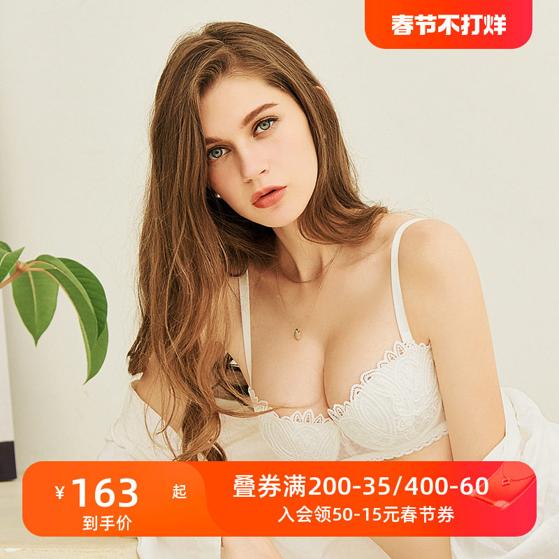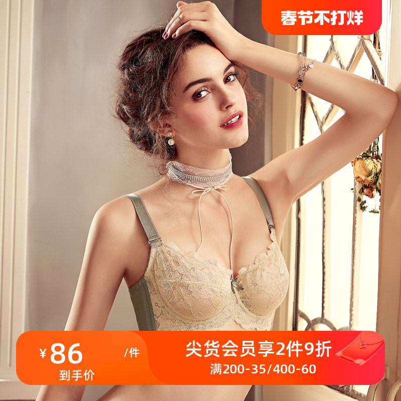 怡倩2021新款内衣女8616255超薄聚拢胸罩蕾丝性感深V显胸小文胸