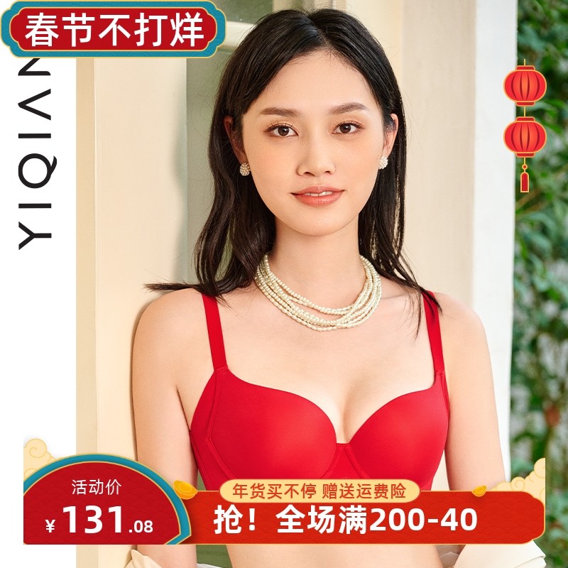 怡倩【心囍纯欲内搭】挂脖薄款内衣女聚拢红色本命年大胸显小文胸