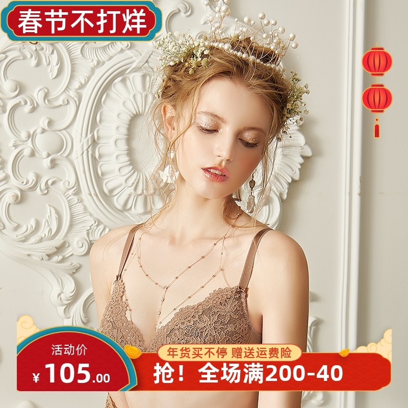 怡倩无钢圈文胸小胸聚拢上托性感深V少女胸罩 法式薄款内衣女