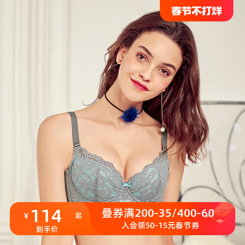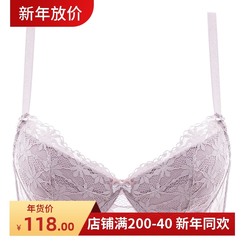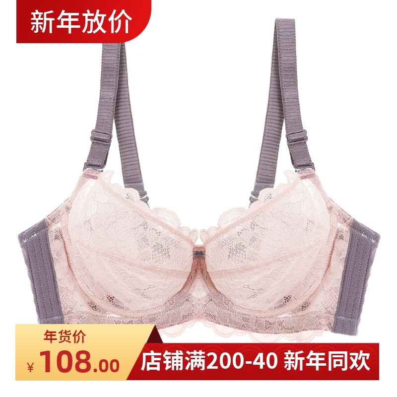 怡倩小胸聚拢上托调整型文胸 蕾丝性感透气无海绵胸罩薄款内衣女