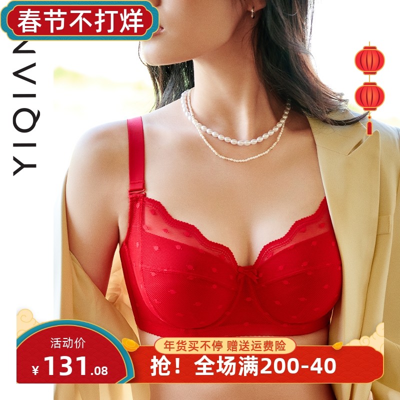 怡倩薄款内衣女大胸显小本命年红色聚拢胸罩夏季透气大码超薄文胸