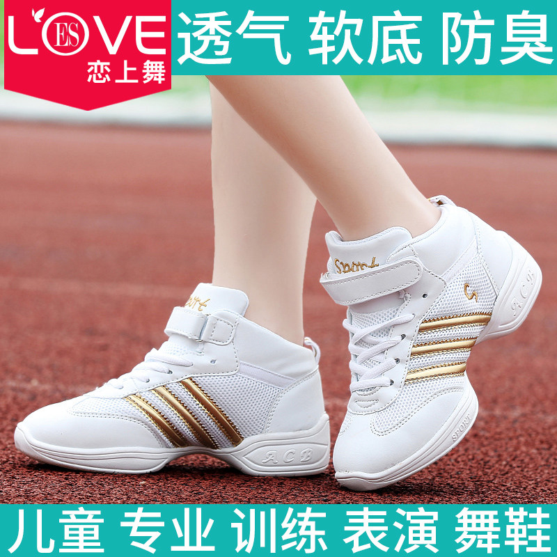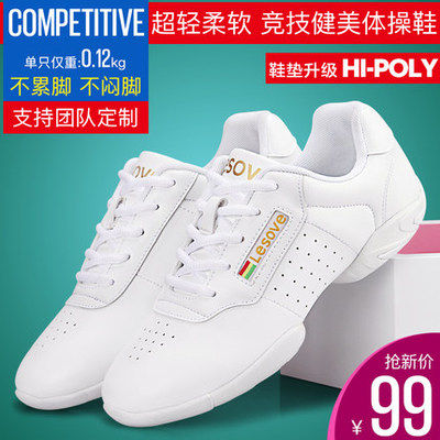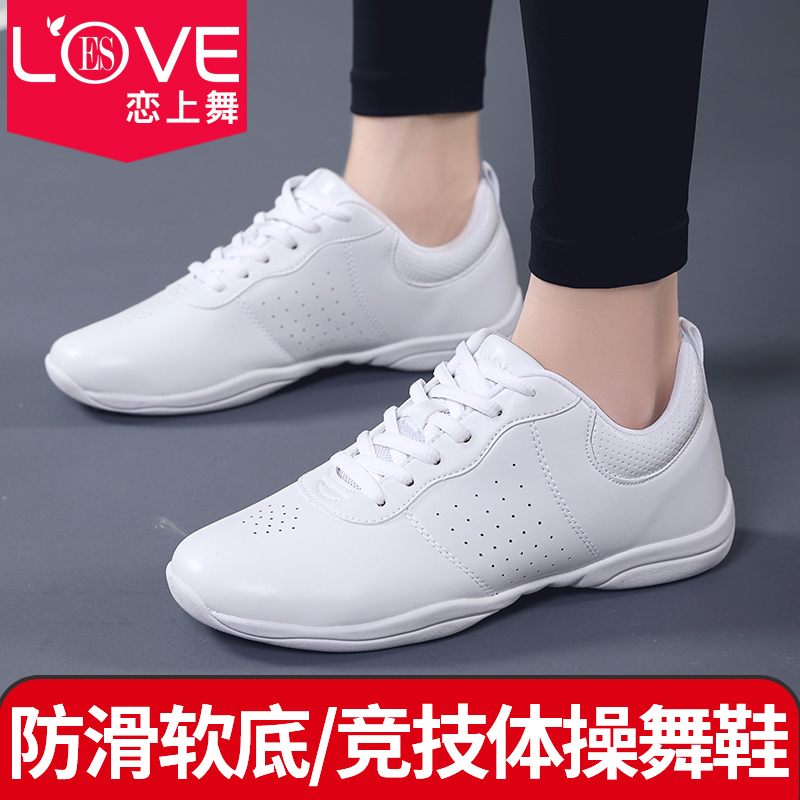 恋上舞竞技鞋女健美操鞋儿童舞蹈鞋软底啦啦操男式训练比赛小白鞋