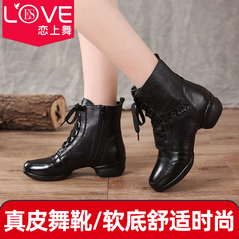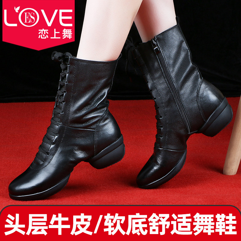 恋上舞广场舞女鞋真皮软底水兵舞靴时尚中跟跳舞鞋高帮成人舞蹈鞋