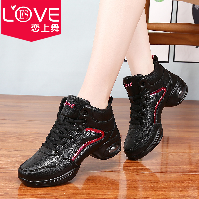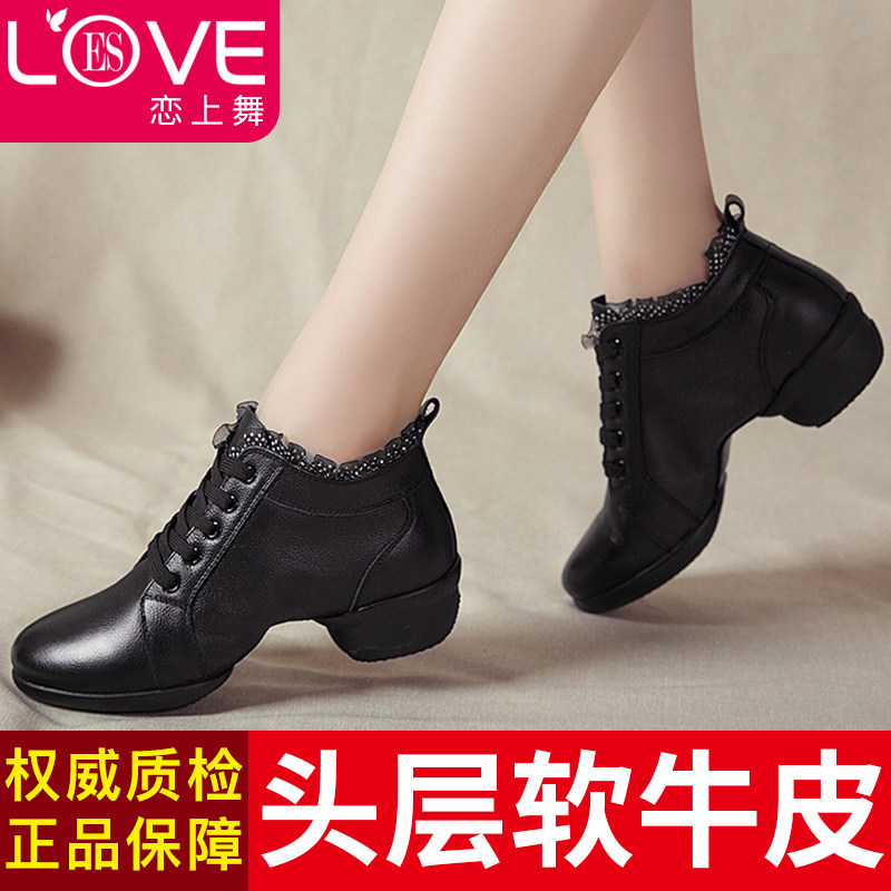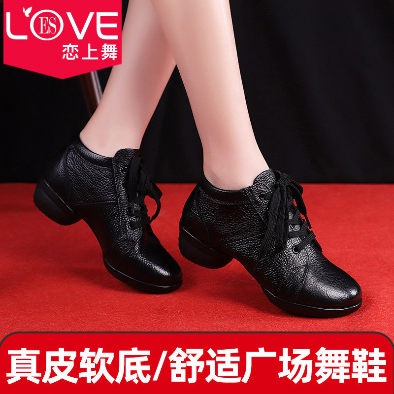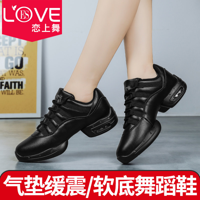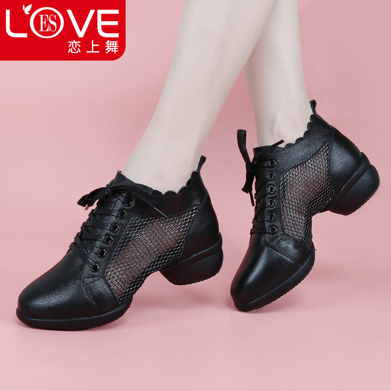恋上舞夏季广场舞鞋真皮现代舞蹈鞋女成人软底透气健身爵士跳舞鞋