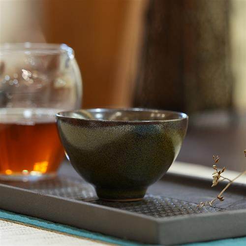高档恒福鸡心杯茶叶末釉陶瓷杯主人杯功夫茶杯礼盒装 茶叶末釉