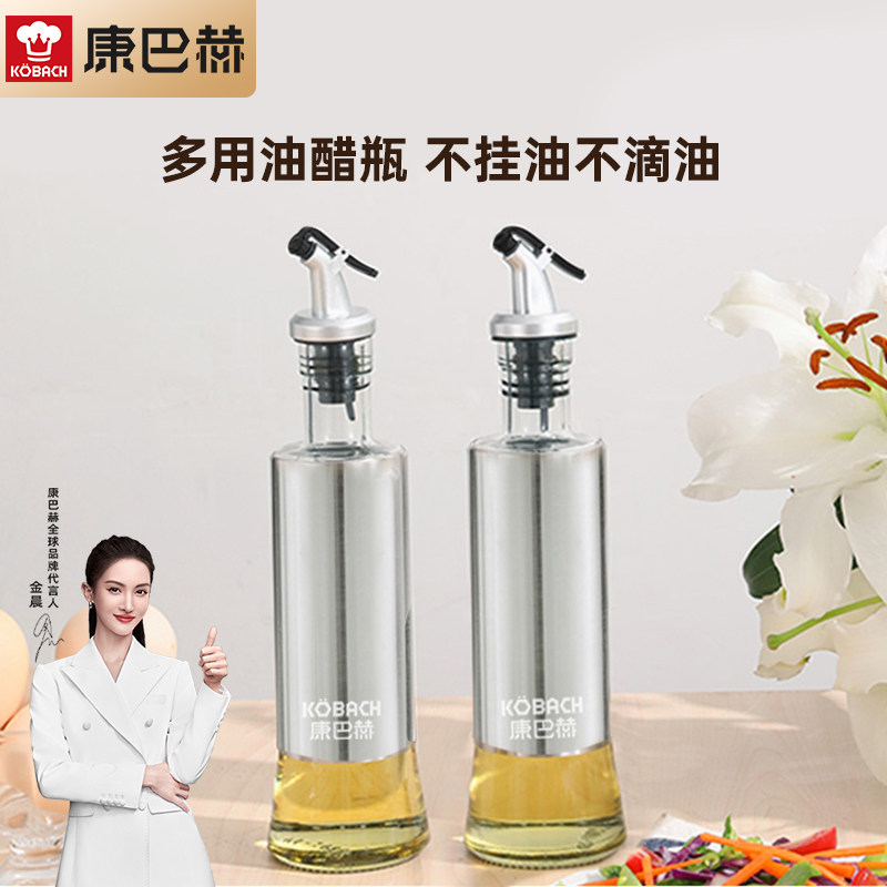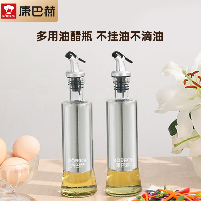 康巴赫油壶不锈钢玻璃油瓶喷油罐家用酱油醋调料瓶防漏2只装
