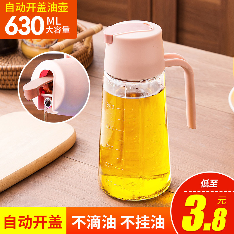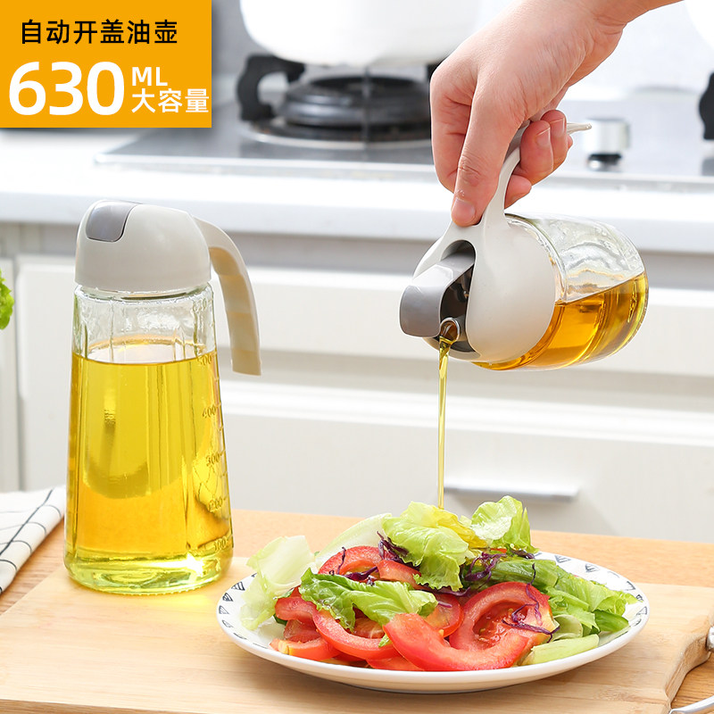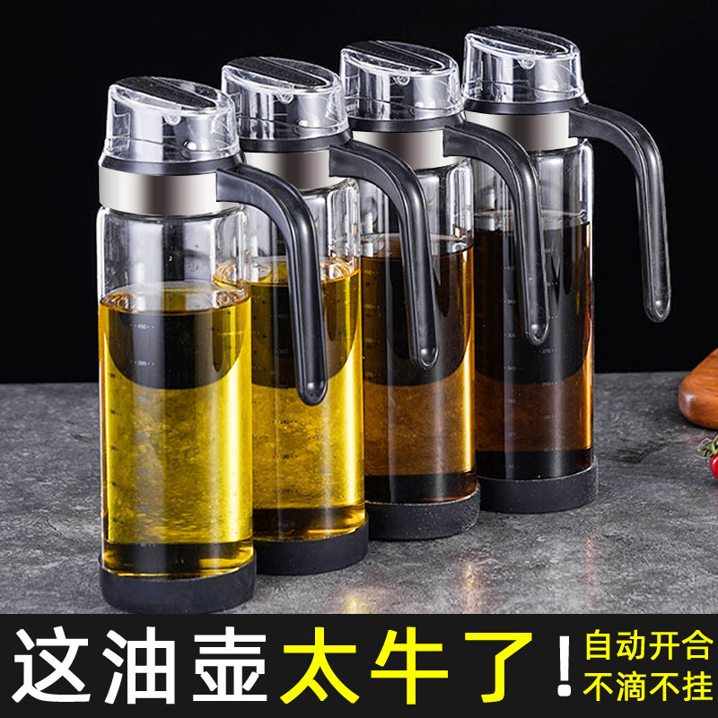 家用自动开合小油壶酱油醋调料瓶厨房油罐壶不挂油油瓶玻璃瓶油罐
