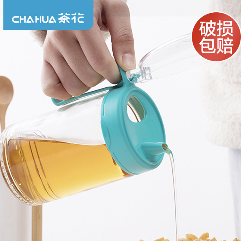茶花油壸厨房玻璃油壶防漏油罐壶家用装油瓶酱油壶调料瓶醋瓶醋壶