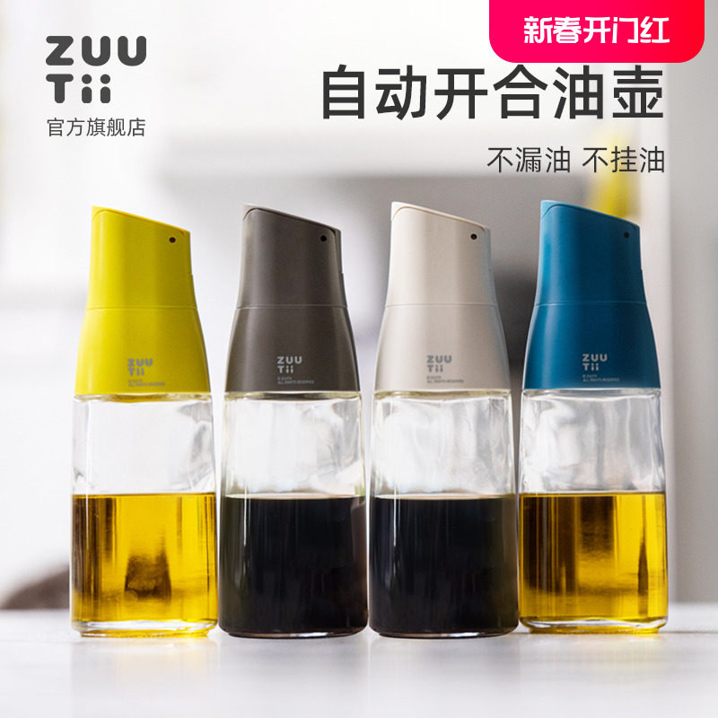 zuutii油壶防漏油玻璃油罐自动开合不挂油厨房家用油壸调料瓶油瓶