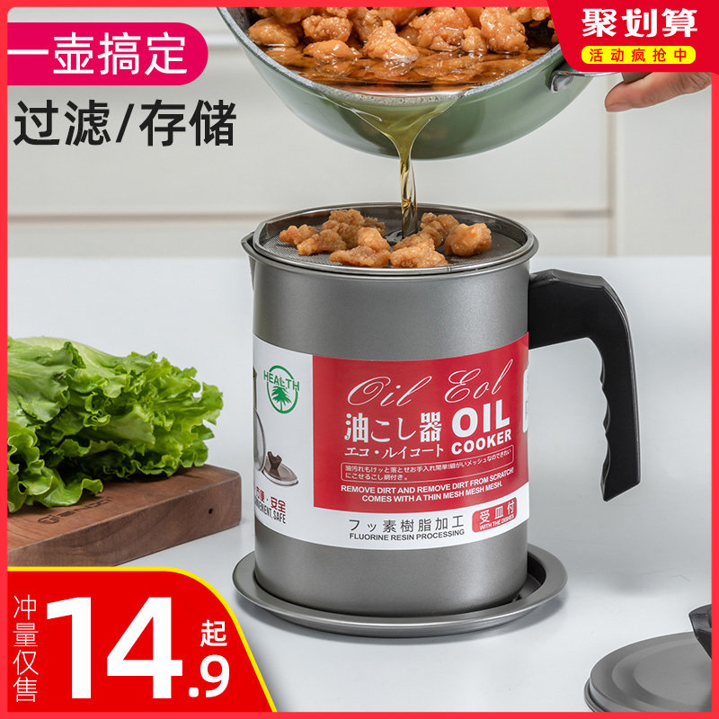 304不锈钢油壶厨房过滤油渣油罐滤油神器 家用装猪油储油罐带滤网