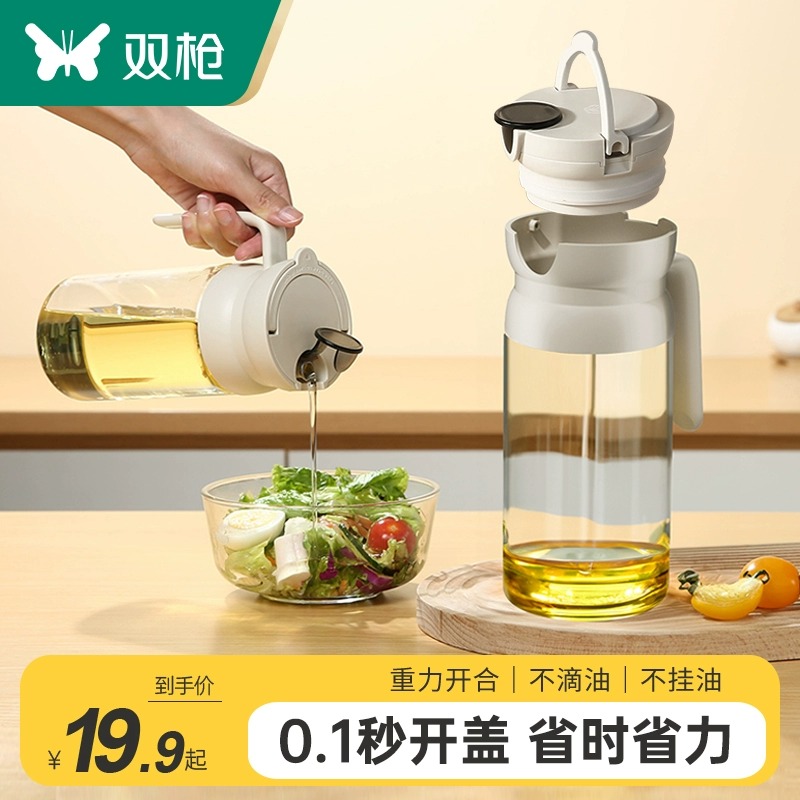 双枪玻璃油壶厨房油罐酱油瓶装油自动开合家用大容量油壶不滴不挂