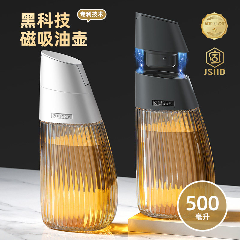 日本LISSA玻璃油壶防漏油瓶家用厨房大油罐重力自动开合装油容器