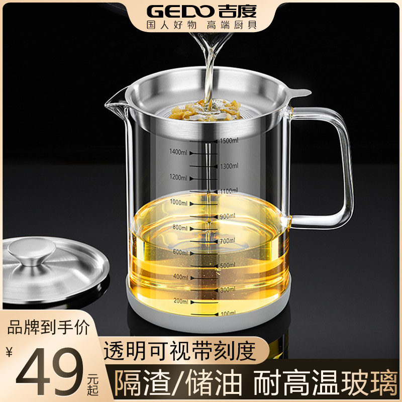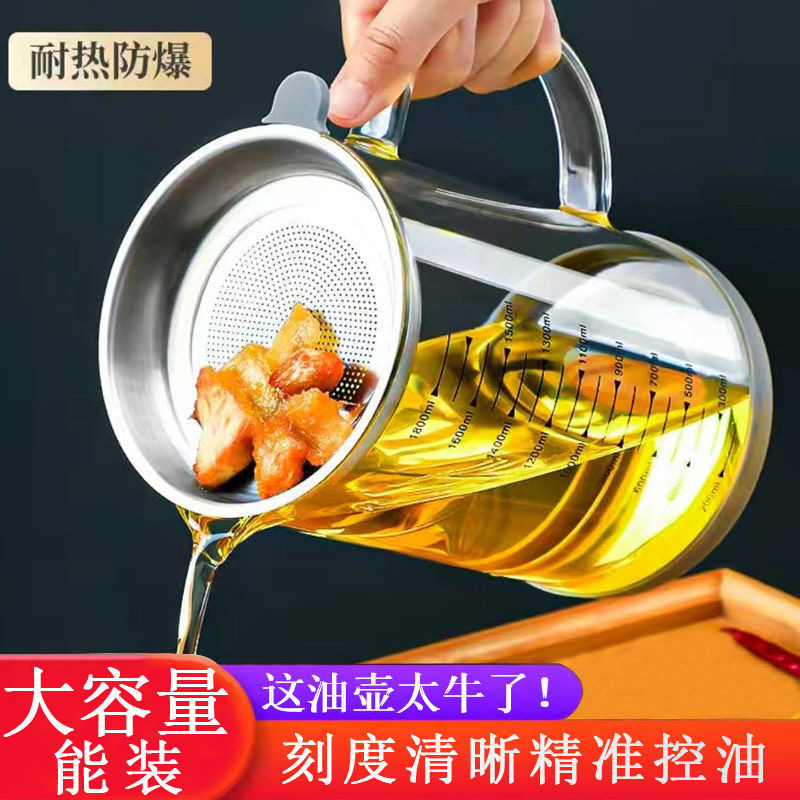吉度滤油壶家用玻璃油壶厨房过滤油渣神器油罐装油滤油储油罐油瓶