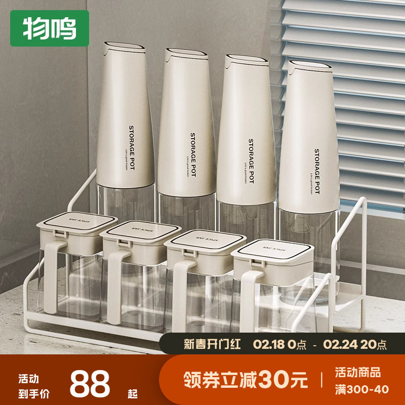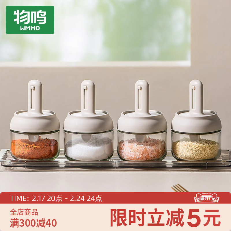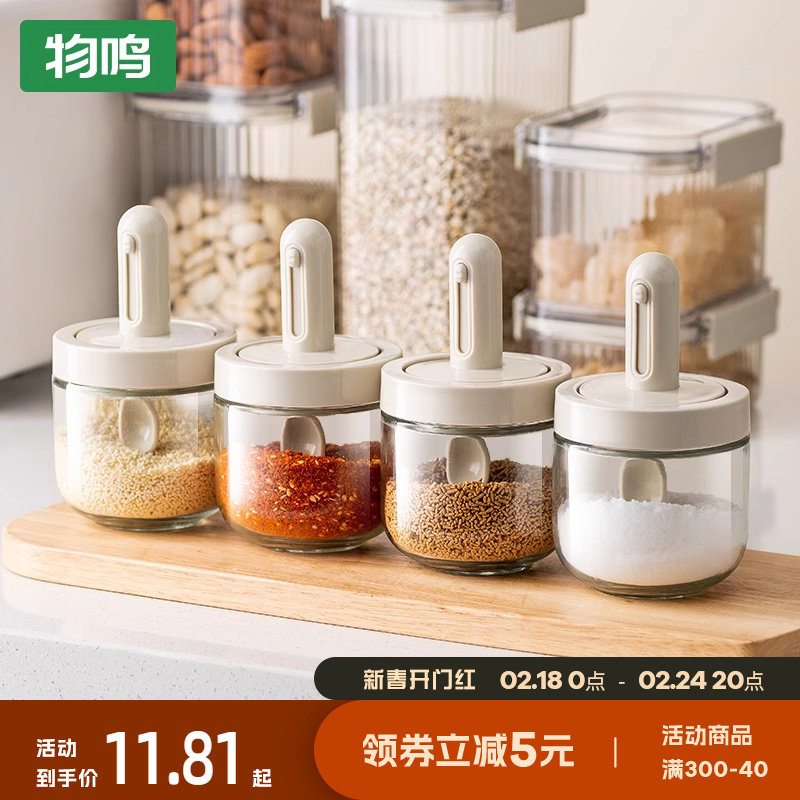 物鸣调料罐套装勺盖一体调料盒厨房家用调料分装瓶油壶盐罐调味罐