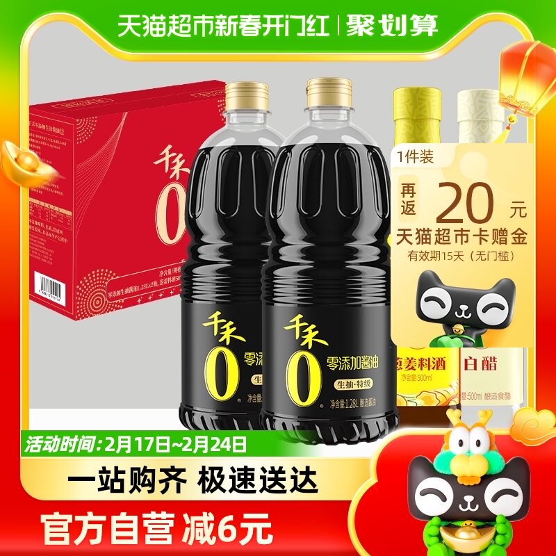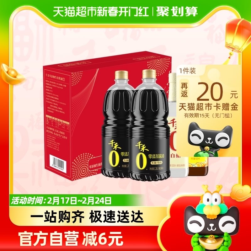 千禾酱油0添加礼盒1.28L*2+500ML*2特级生抽白醋料酒炒菜调味家用