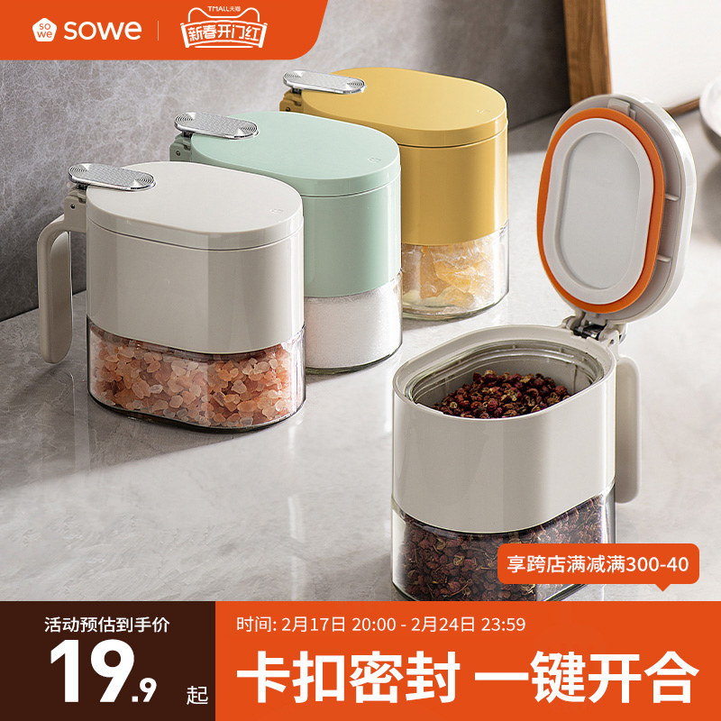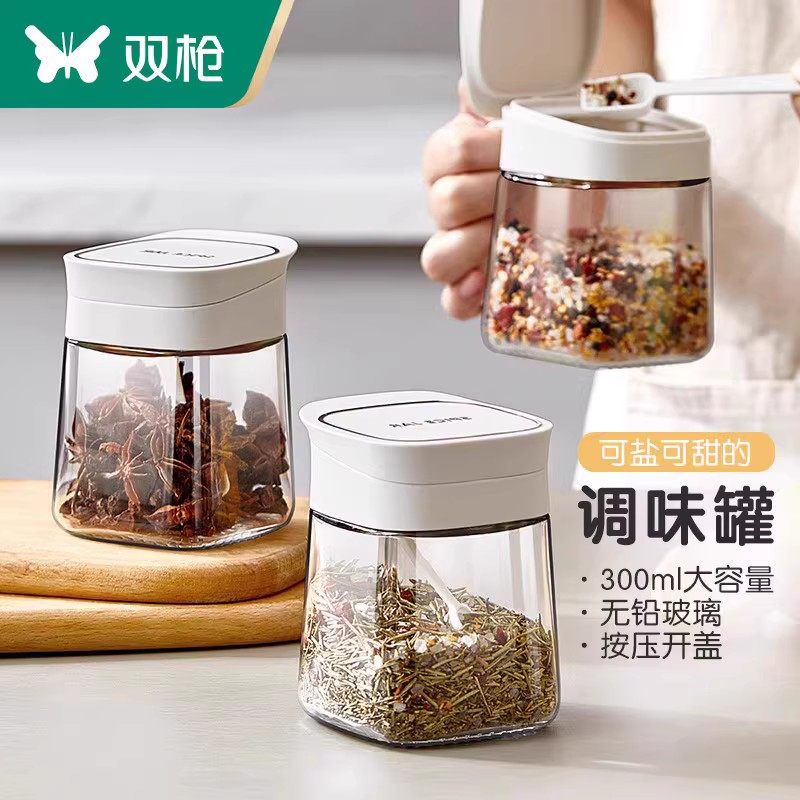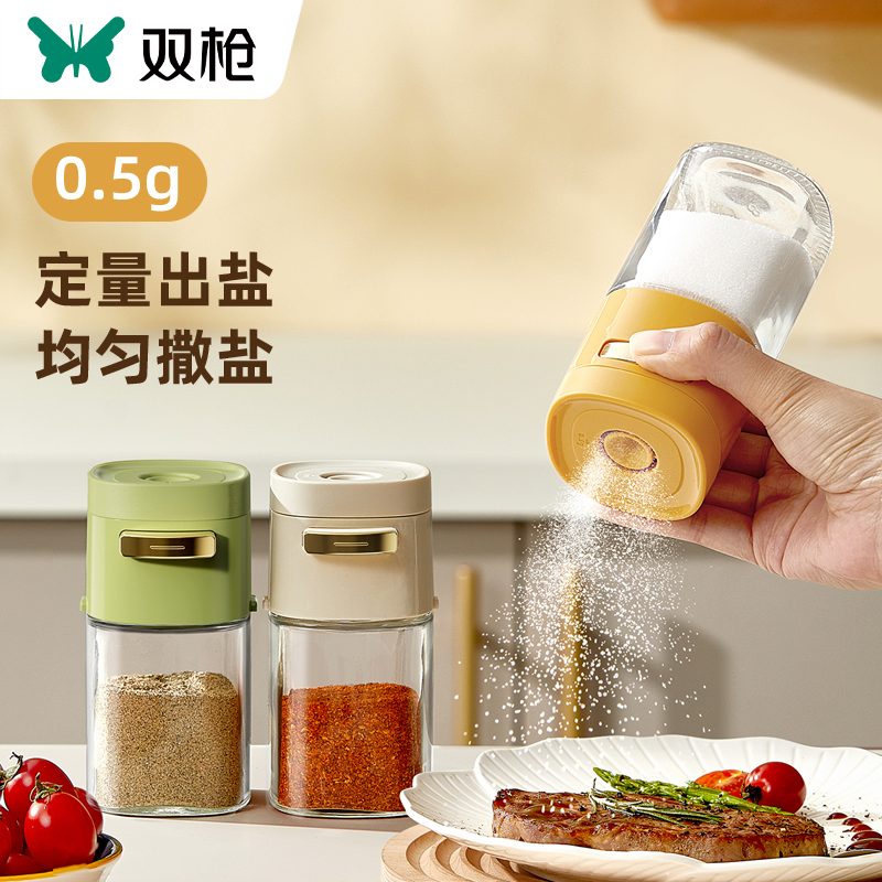 双枪定量调味罐家用厨房高颜值调料盒收纳盒网红盐罐瓶组合套装