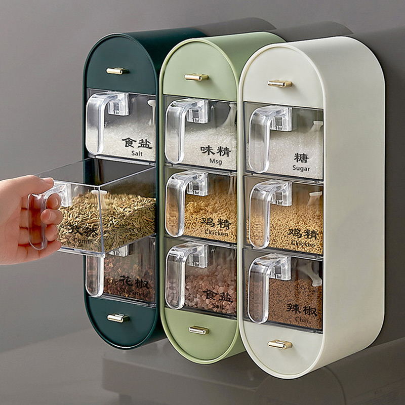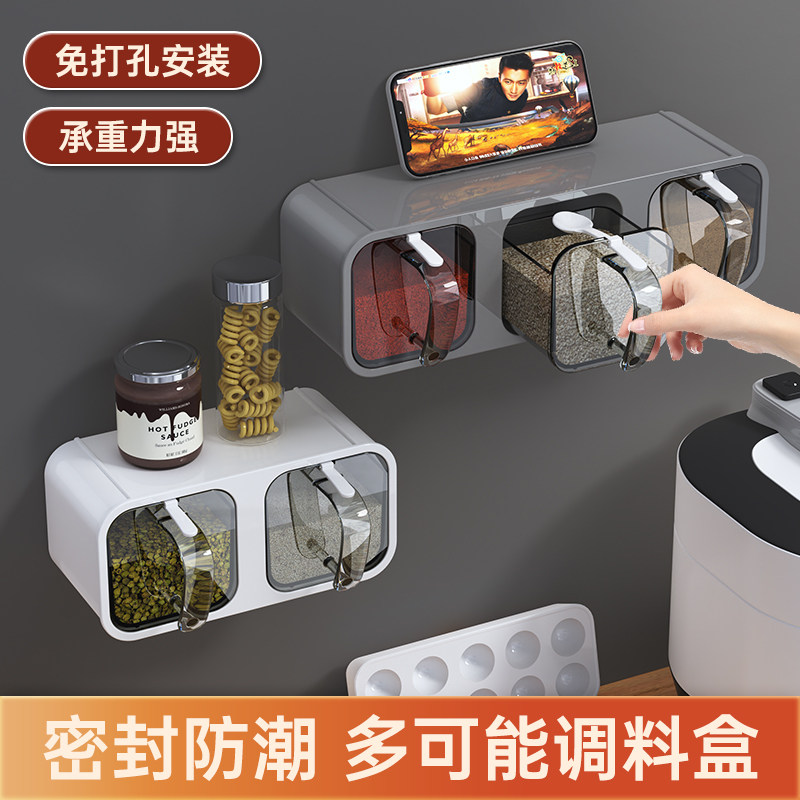 调味罐厨房家用盐罐调料盒调料罐网红收纳盒组合装挂壁式一体多格