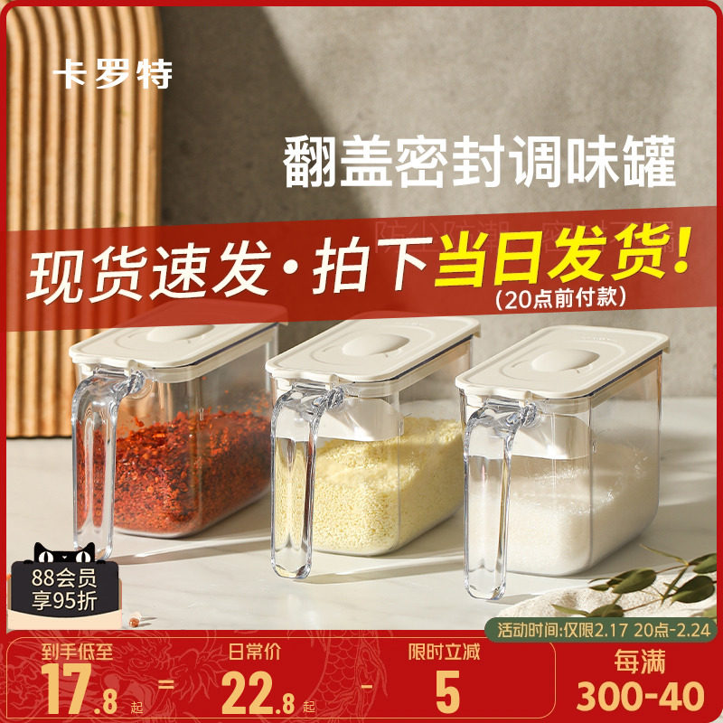 卡罗特调料罐套装勺盖一体盐味精调料盒家用厨房调味料瓶盐罐油壶