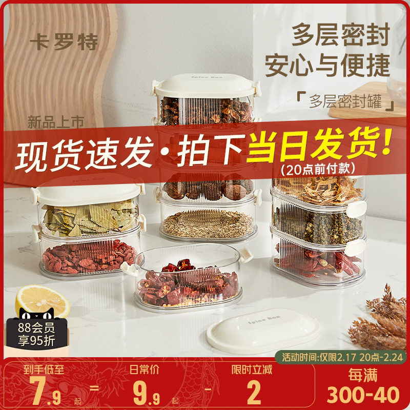 卡罗特料收纳盒调料罐盒家用厨房花椒大料佐料储物盒密封罐调味罐