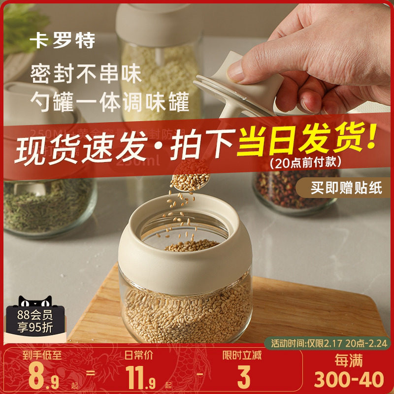 卡罗特玻璃调料盒厨房收纳调料瓶调味料罐子套装盐罐防潮密封家用
