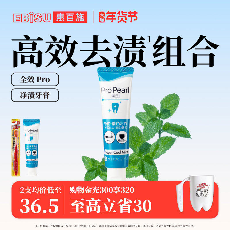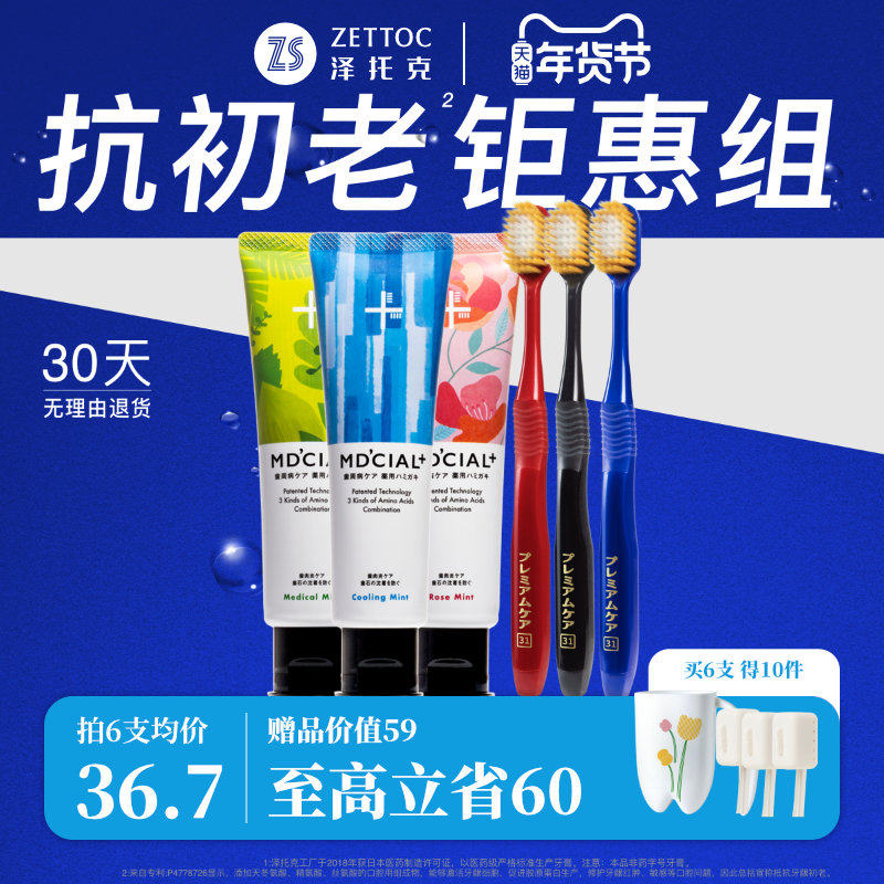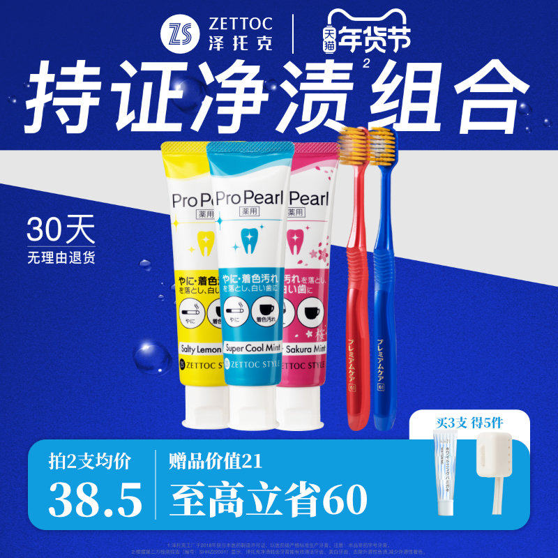 泽托克x惠百施美白牙膏牙刷去渍清新口气男女专用正品