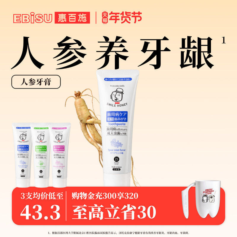 惠百施x泽托克人参牙膏丨固齿护龈防蛀含氟女男成人专用官方正品