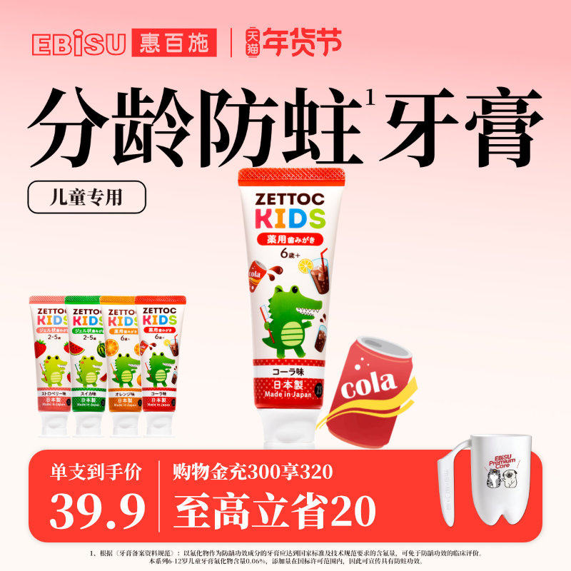 惠百施x泽托克儿童牙膏2-6-12岁含氟口腔清洁牙防龋齿修复专用
