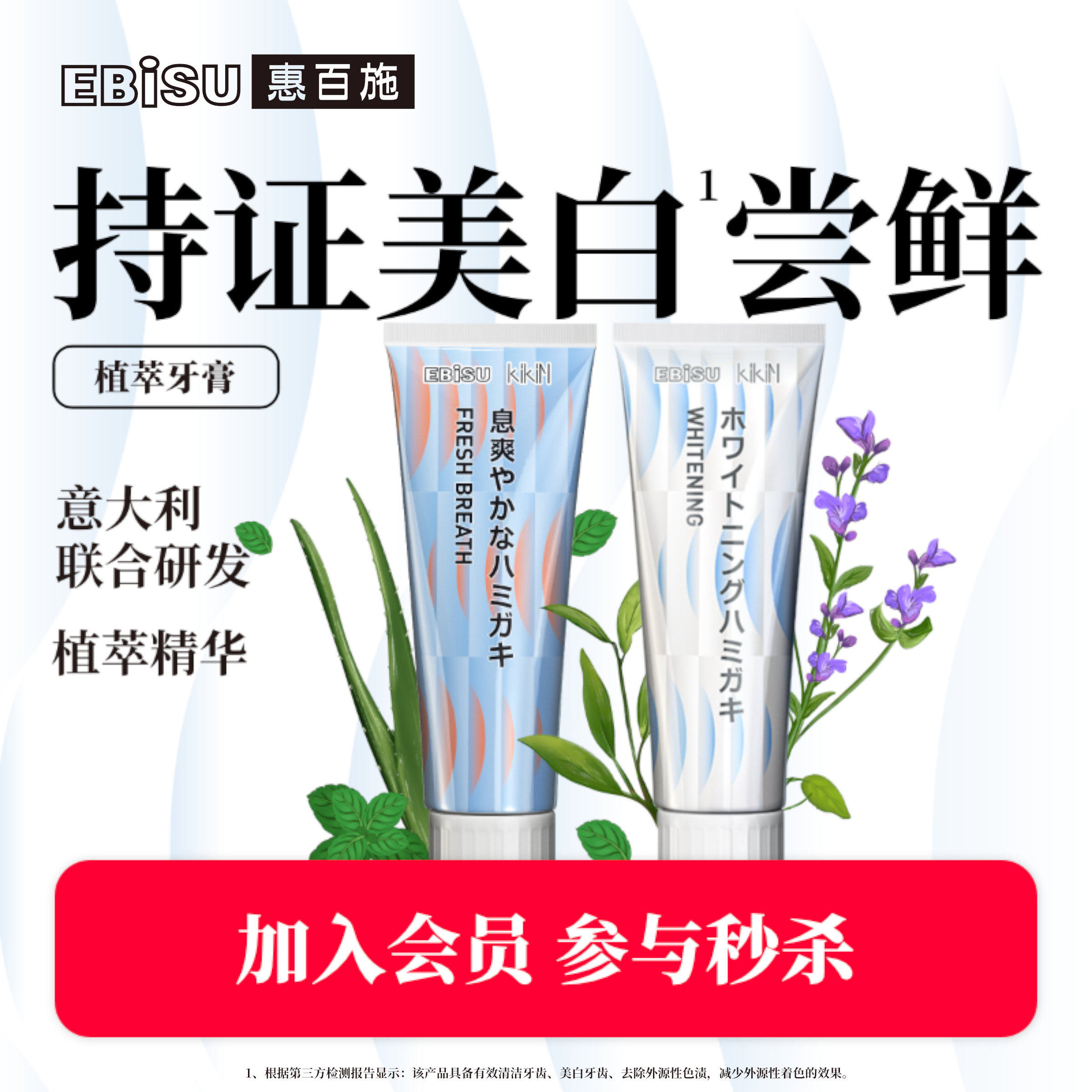 【会员秒杀】惠百施几净美白牙膏护龈清新口气1支装 单拍不包邮