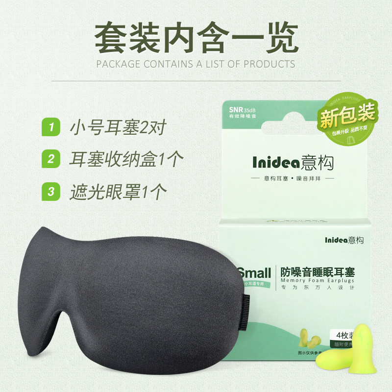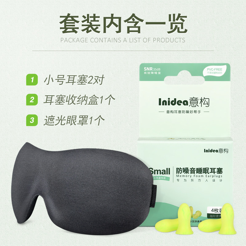 意构睡觉防噪音耳塞眼罩套装 小耳道睡眠专用遮光隔音降噪二件套