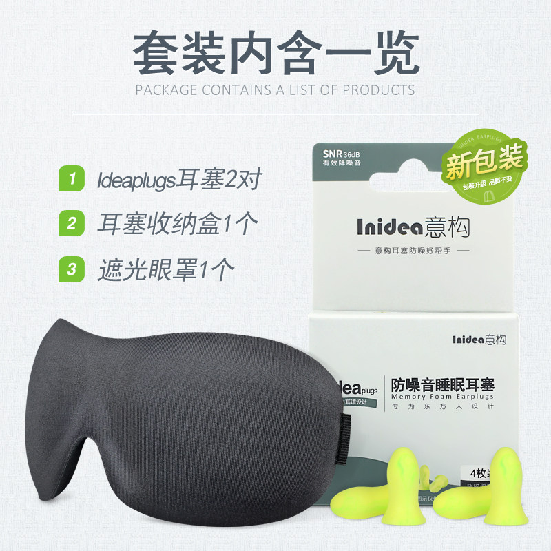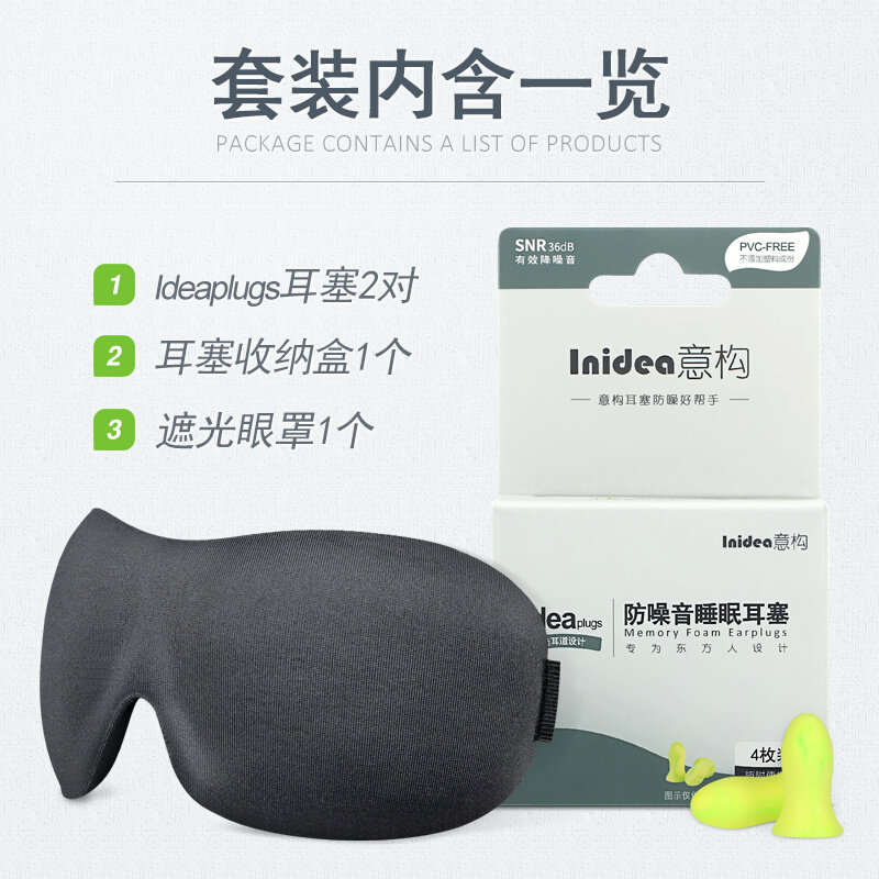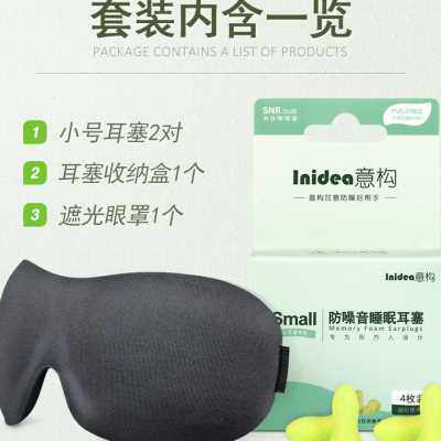 意构眼罩耳塞睡觉套装 防噪音隔音睡眠耳塞+遮光睡眠眼罩 2合1