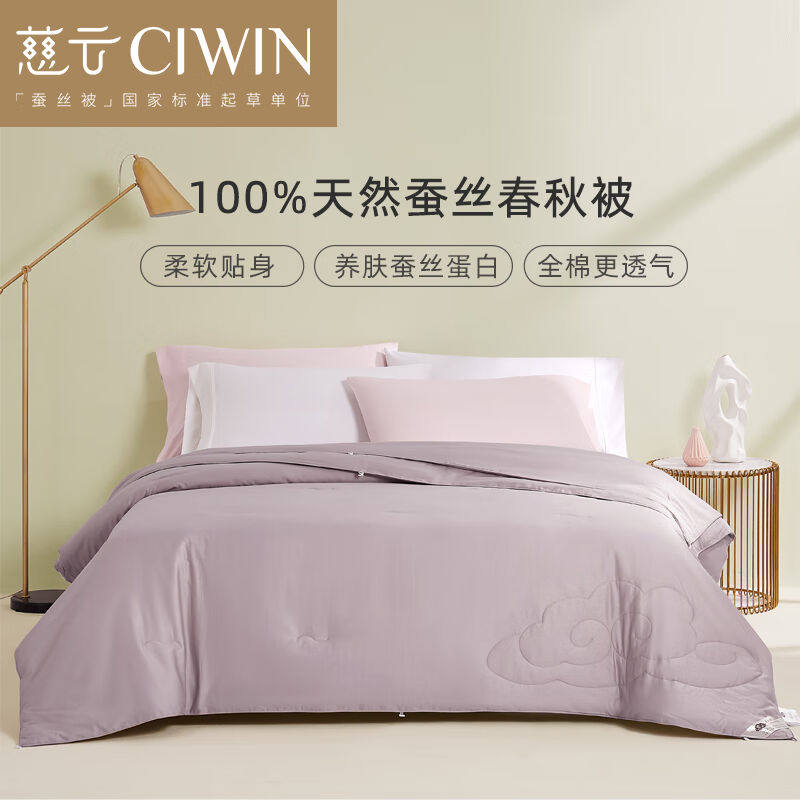 慈云100%天然蚕丝春秋冬被蚕丝被芯豆蔻紫被重约4.5斤220cmx240cm