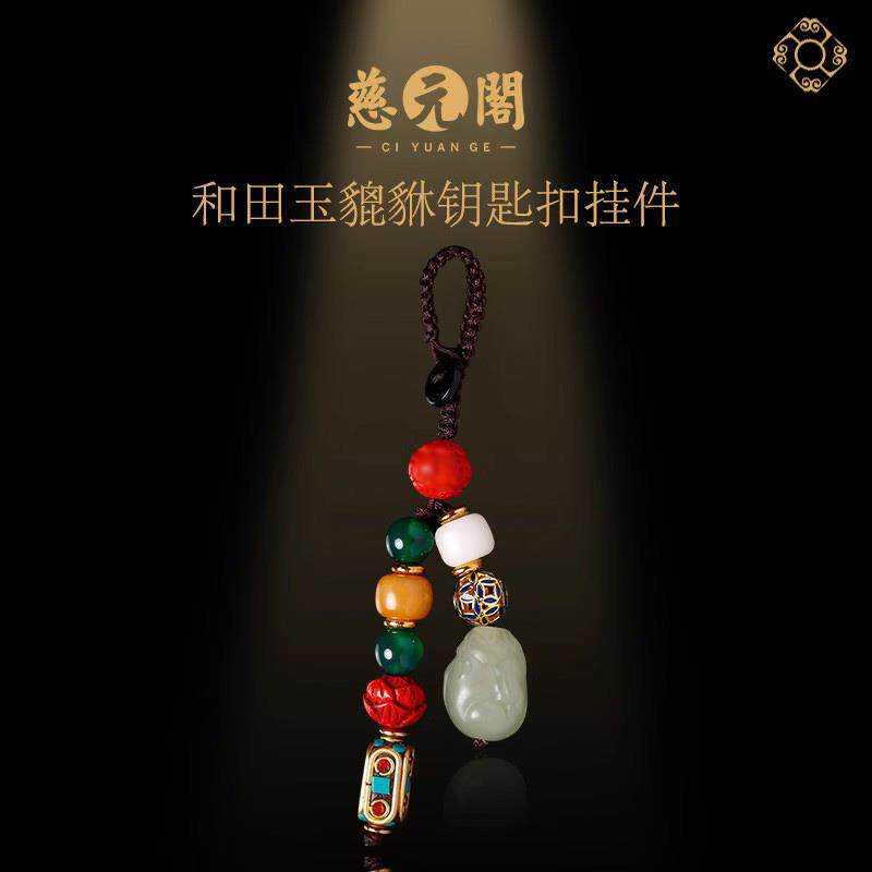 慈元阁和田玉貔貅钥匙扣挂件男女檀木精致朱砂原石手机链车饰挂件